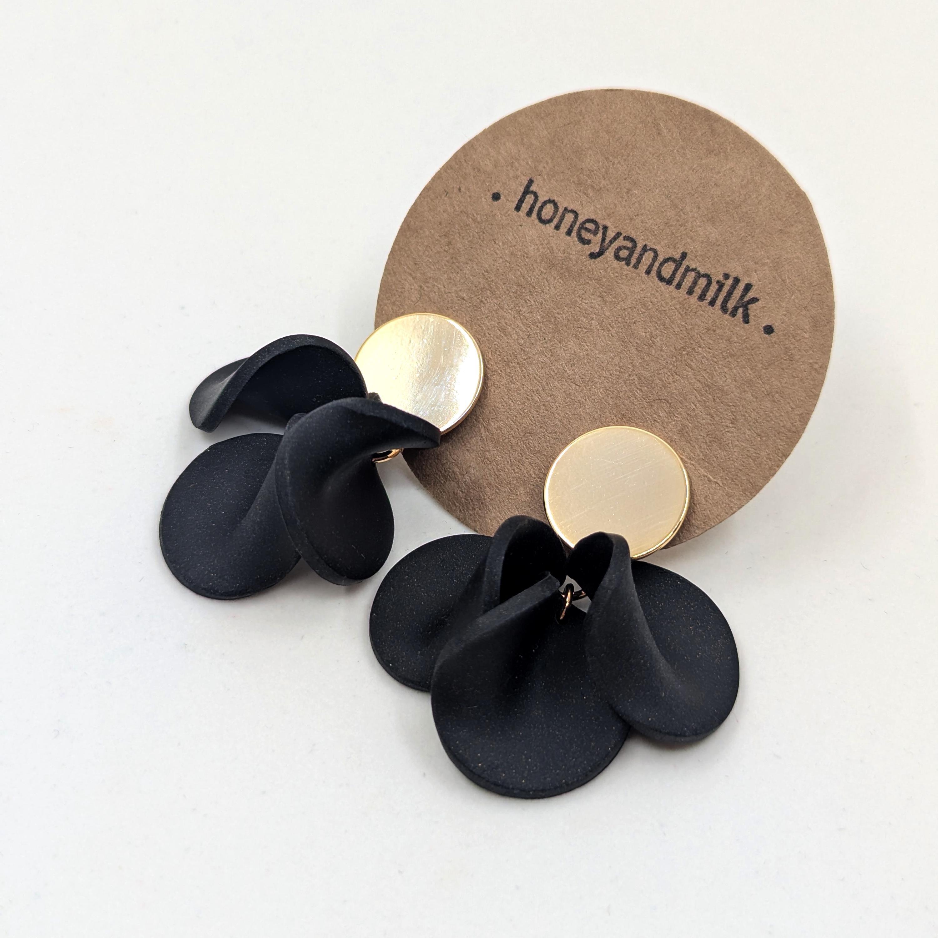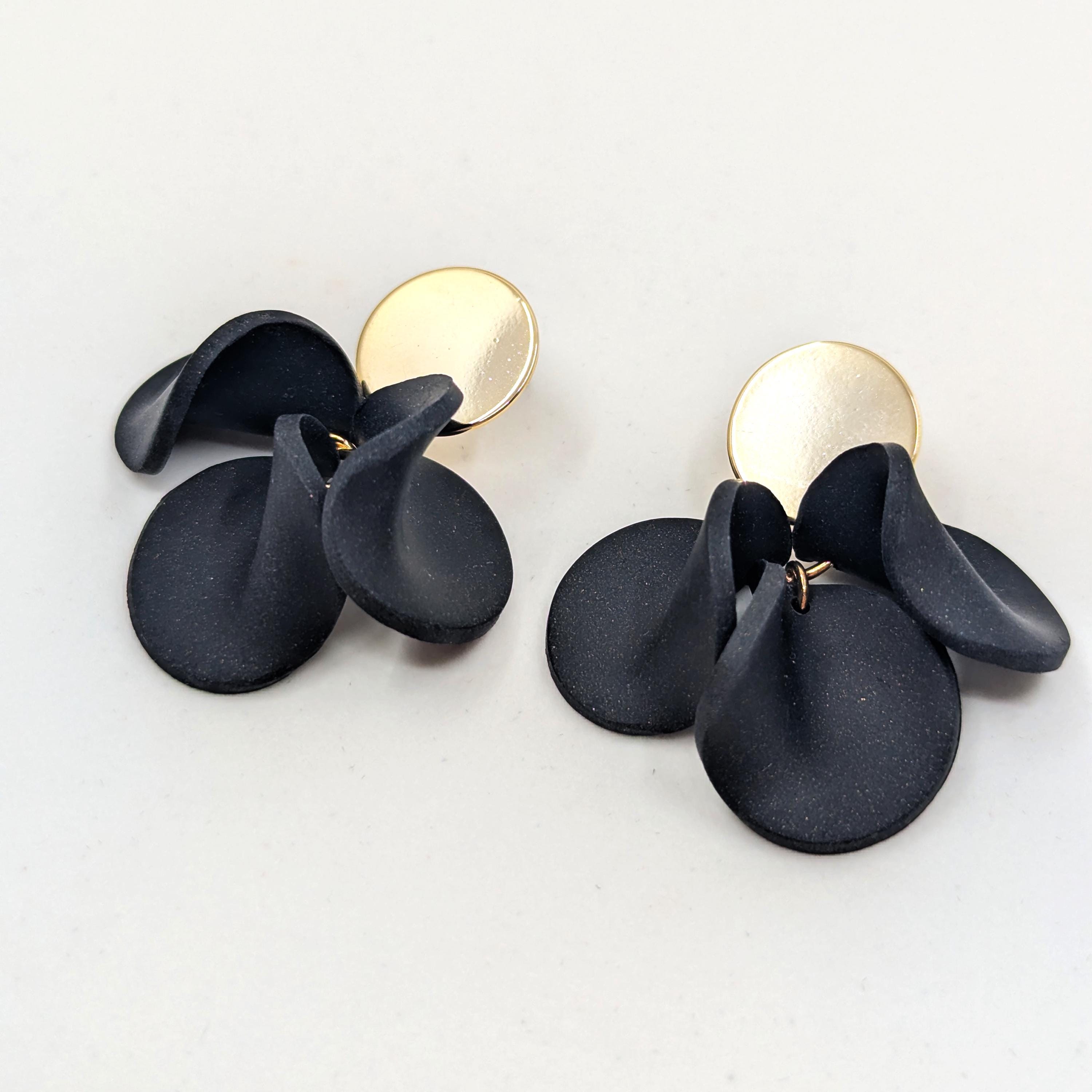 Elles sont composées d'une pastille plaquée or sur laquelle viennent se poser 3 pétales légèrement ondulés.