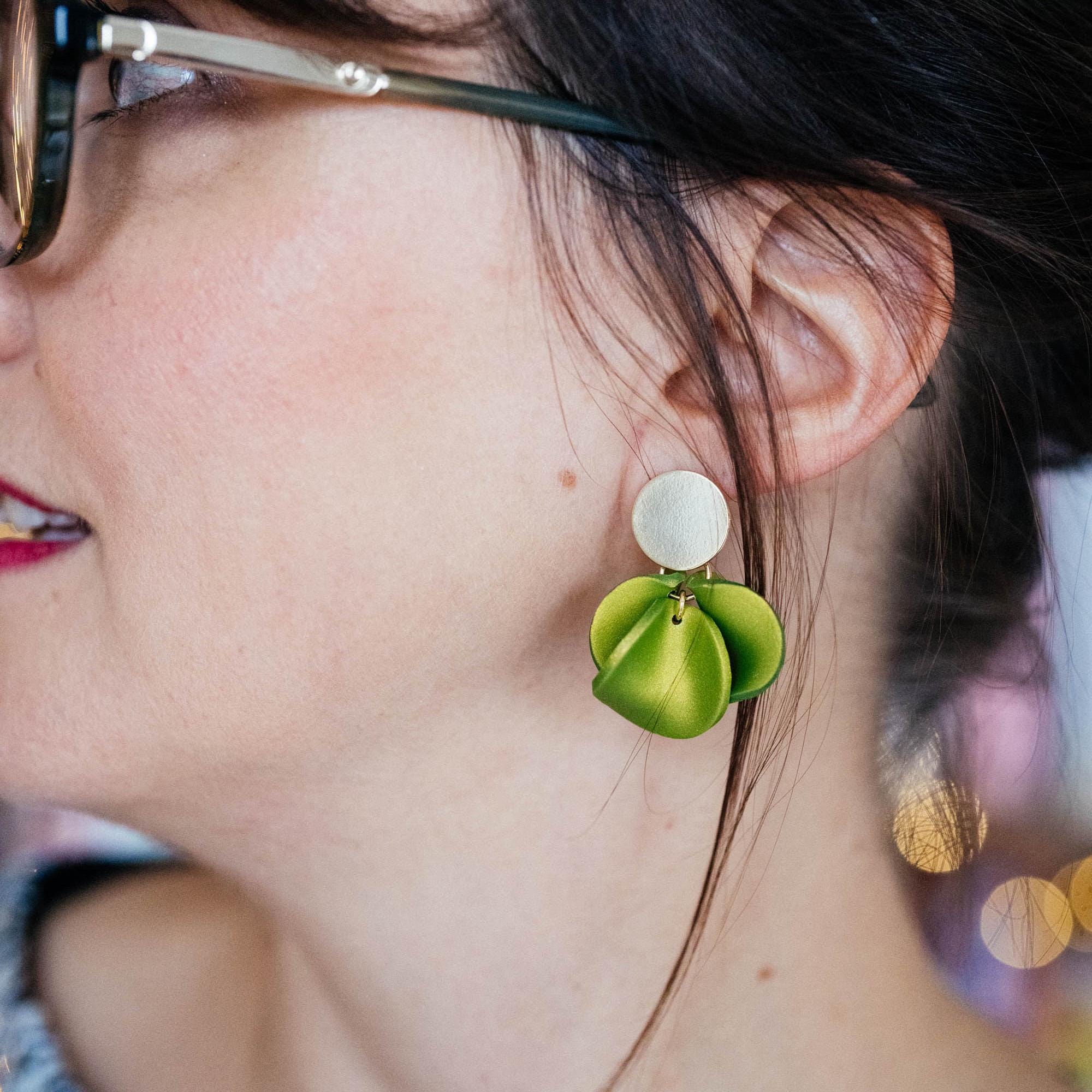 Voici les boucles BLOOM, des petits pétales colorés qui se balancent sur vos oreilles.
