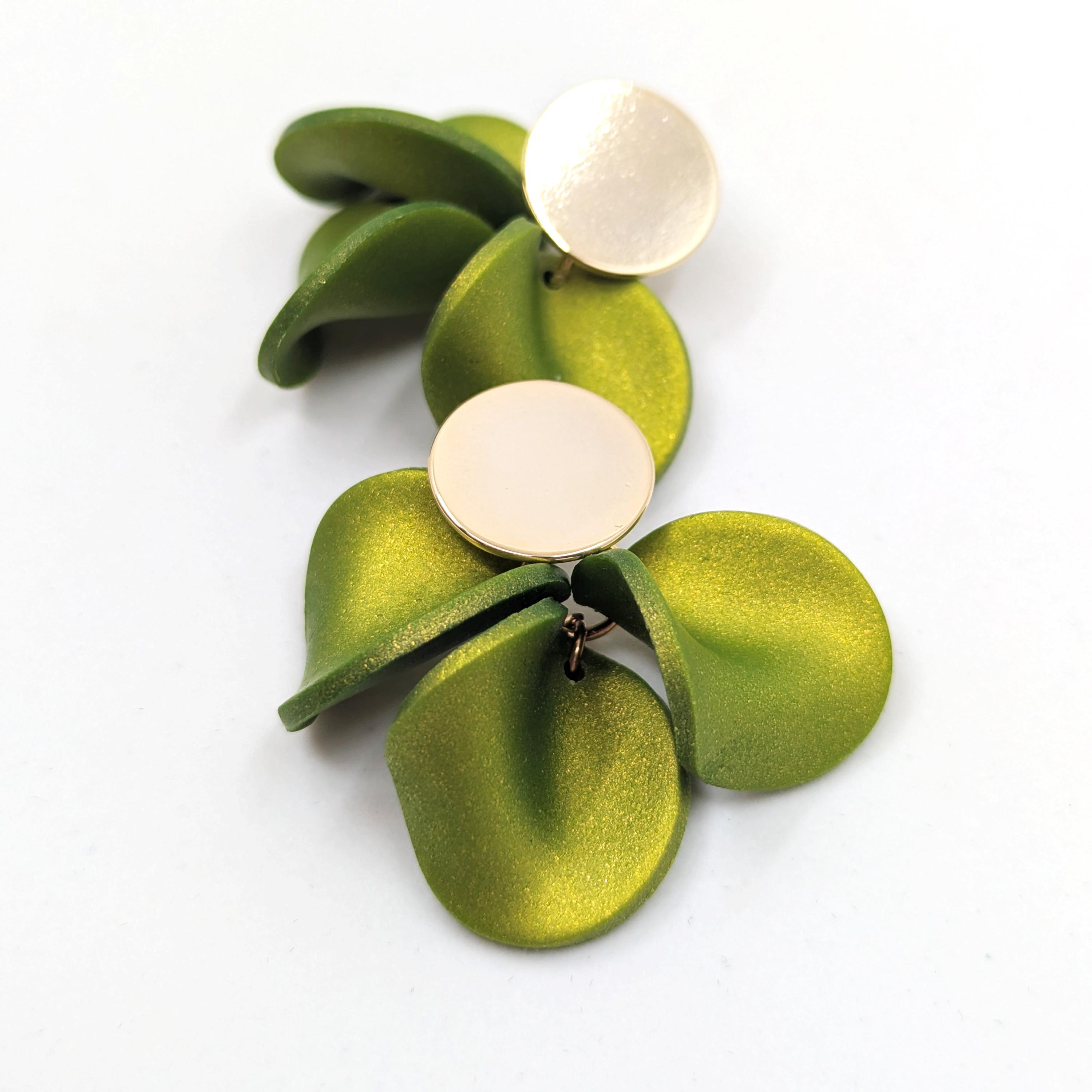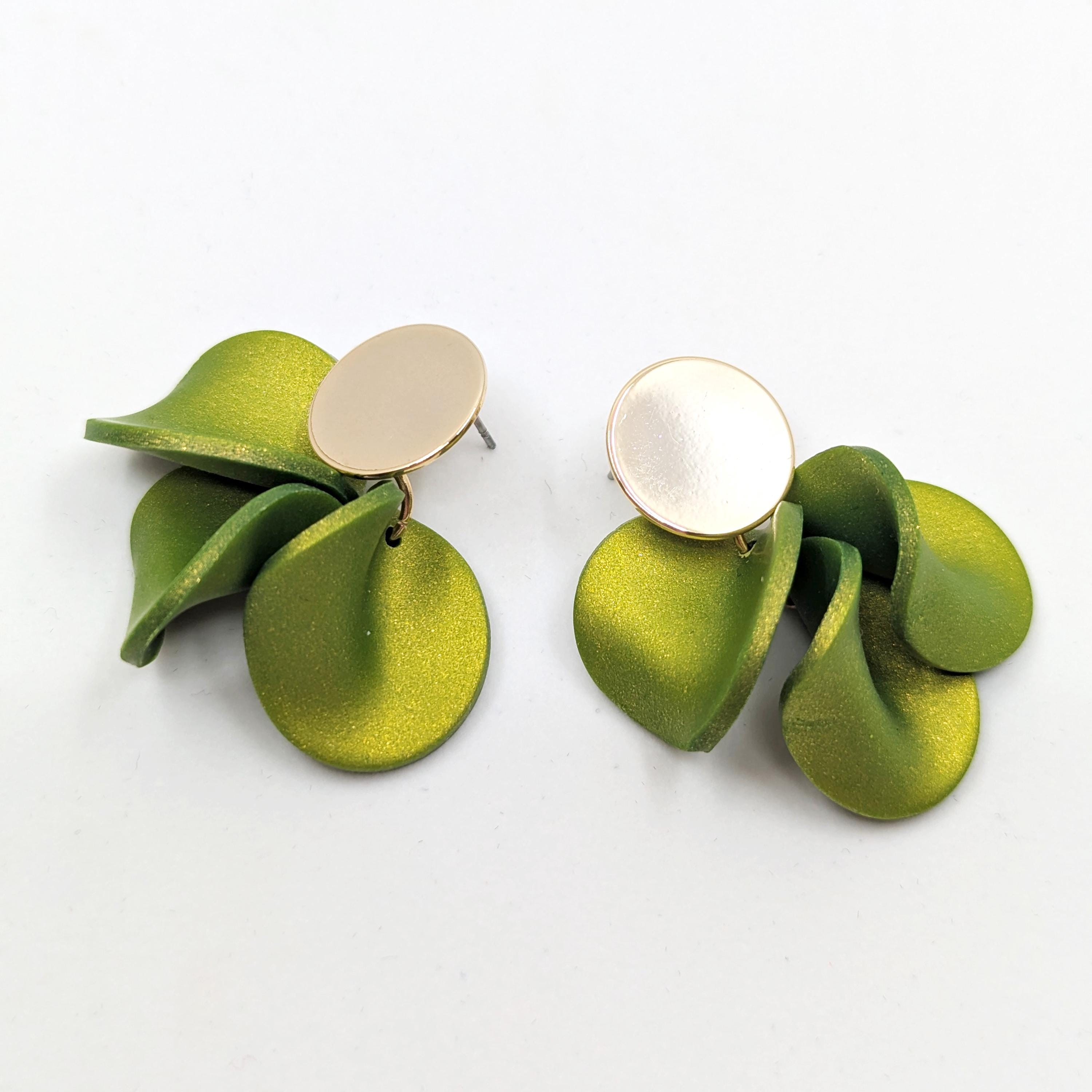 Elles sont composées d'une pastille plaquée or sur laquelle viennent se poser 3 pétales légèrement ondulés.