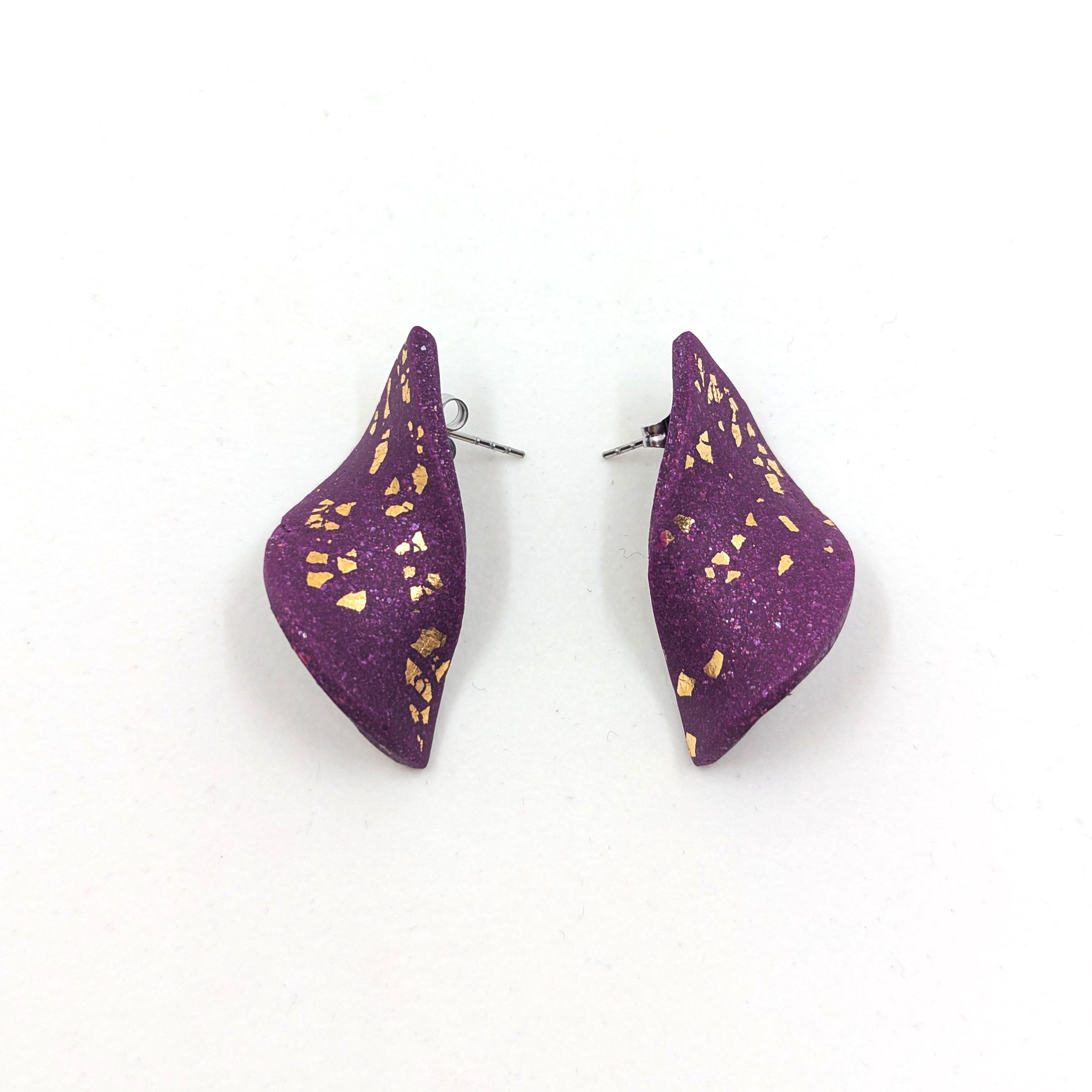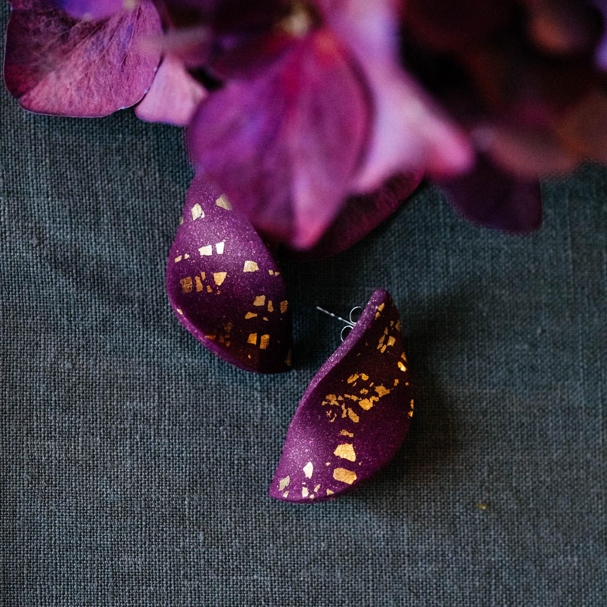 ✨💜 On les adore dans cette version violine, toujours parsemé de touches dorées, ces boucles sont modelées à la main en pâte polymère.
