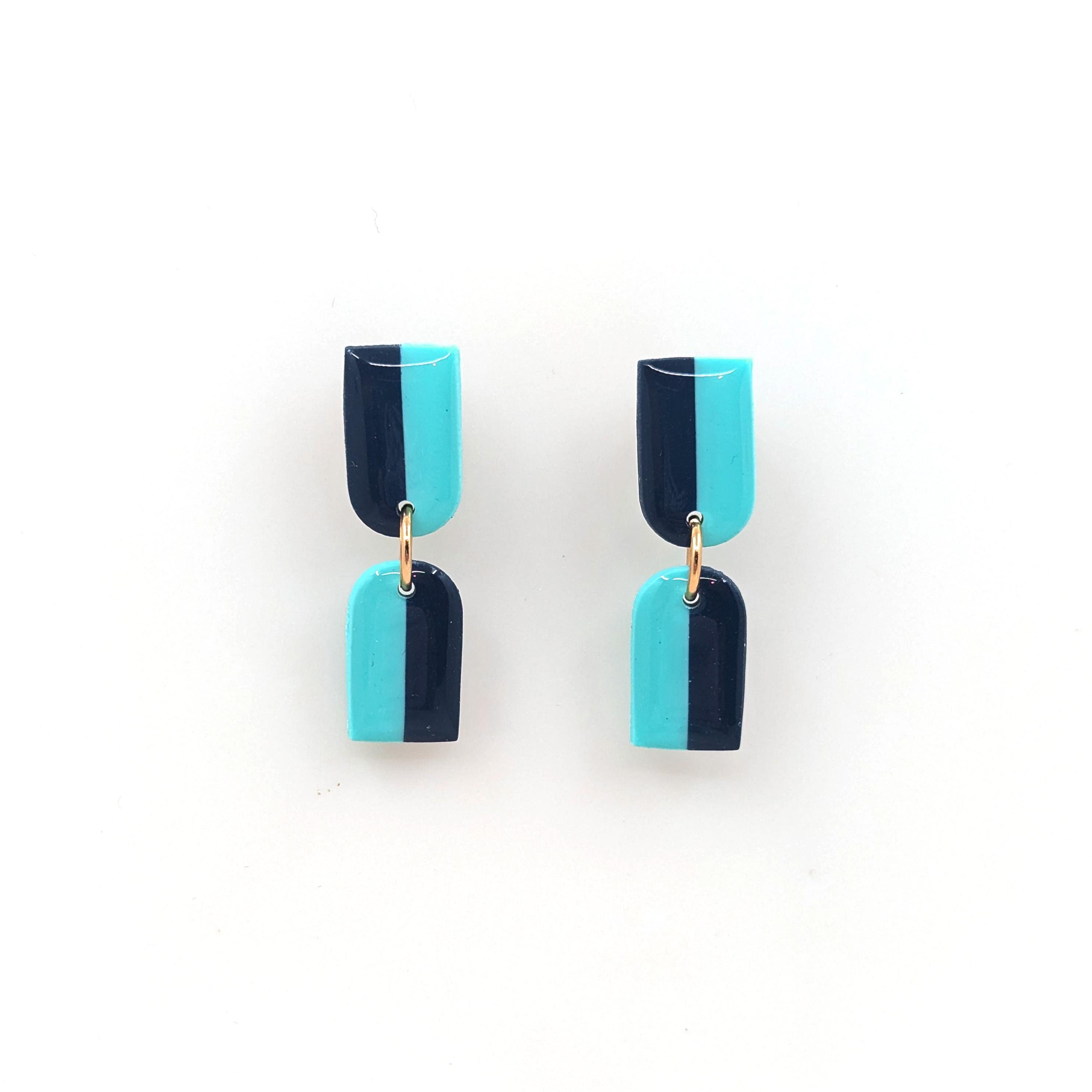 💙🩵 Je vous présente les boucles d'oreilles BIGOUT, comme des petits bonbons colorés et graphiques qui se balancent sur vos oreilles.