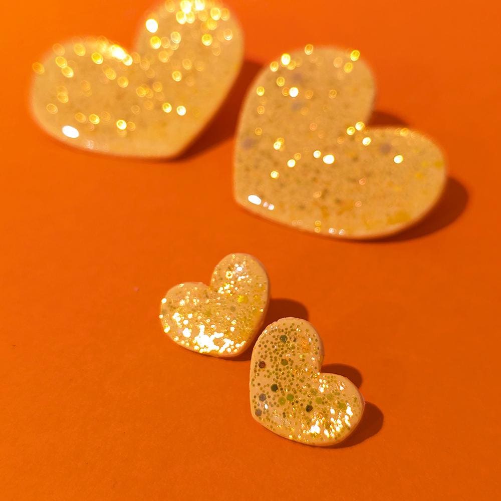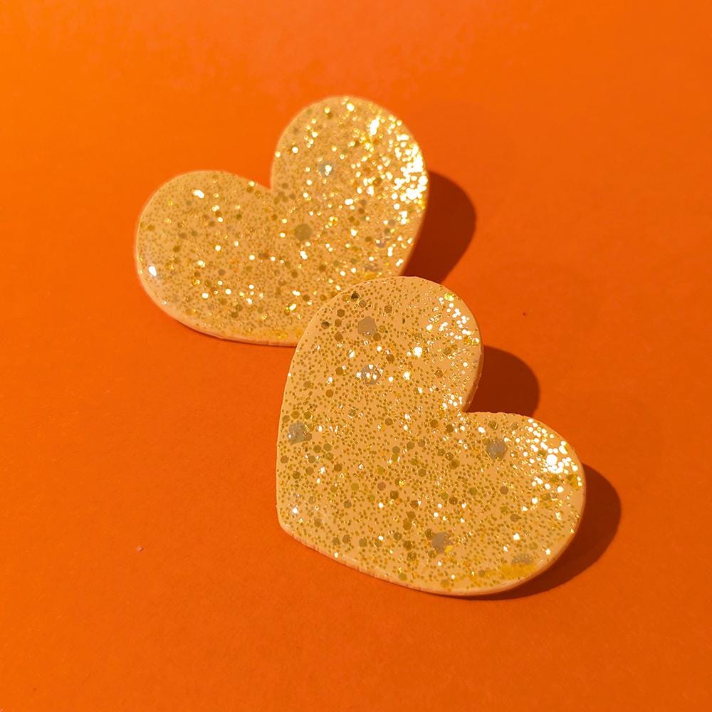 On aime et on le montre, avec ces boucles d'oreilles coeur, flamboyantes avec cette couleur orange pailleté, résiné pour encore plus de brillance!