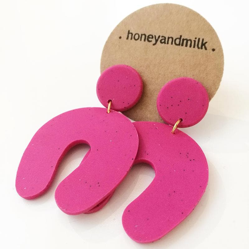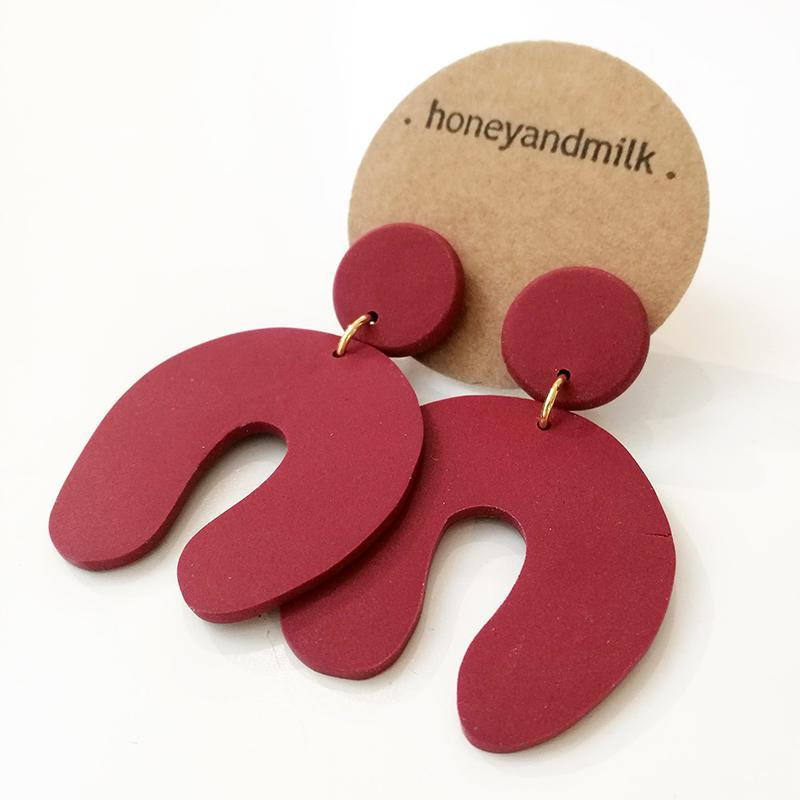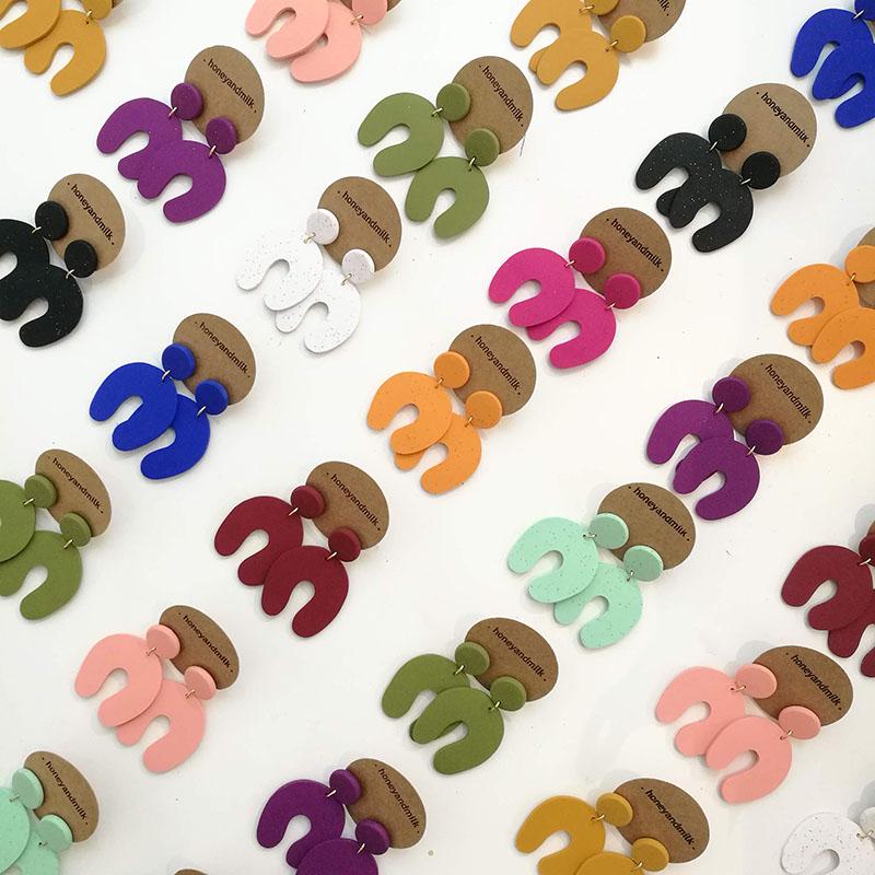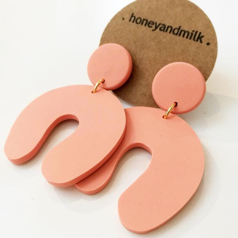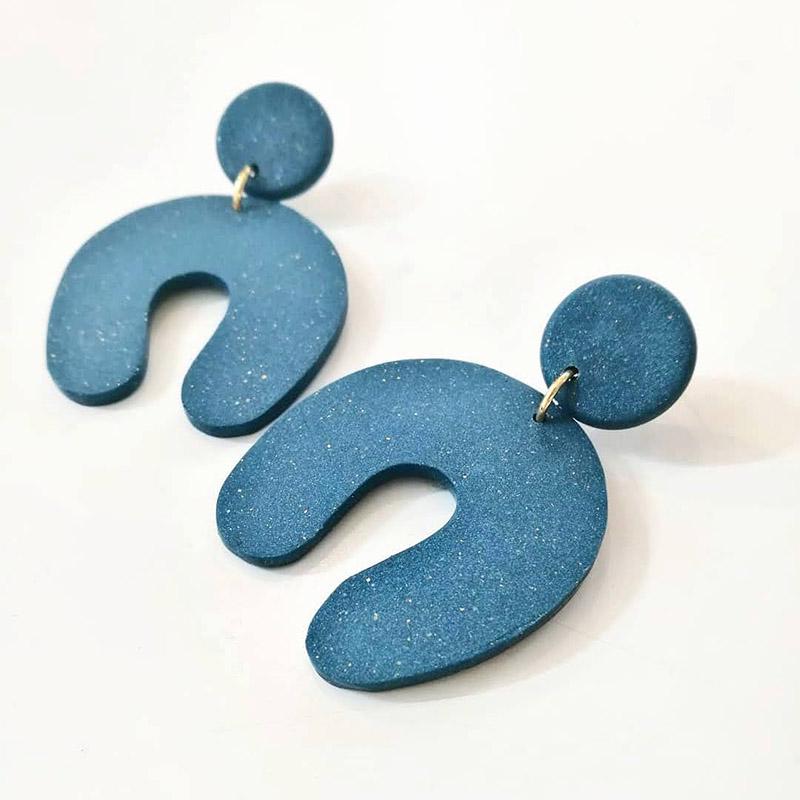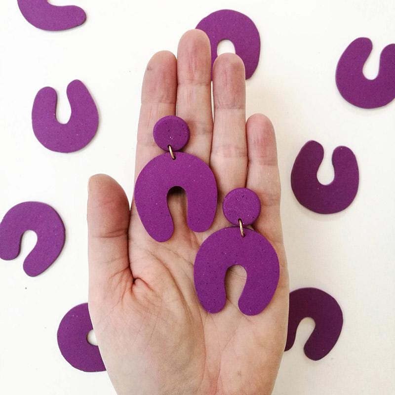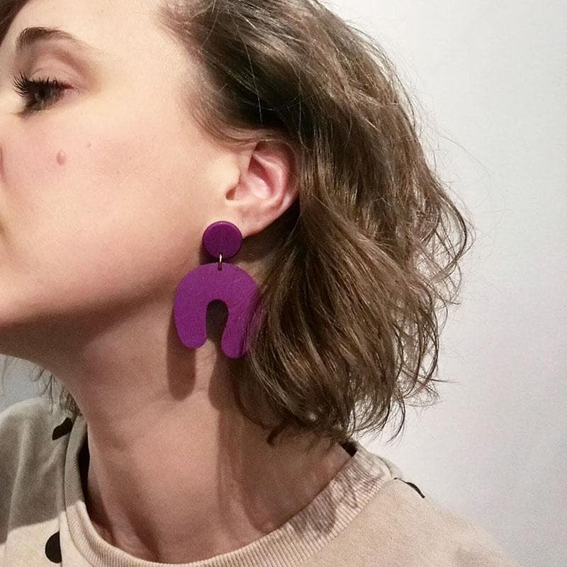 Affirmez votre style avec ces boucles d'oreilles colorblock, aux courbes voluptueuses, modelées à la main en pâte polymère.