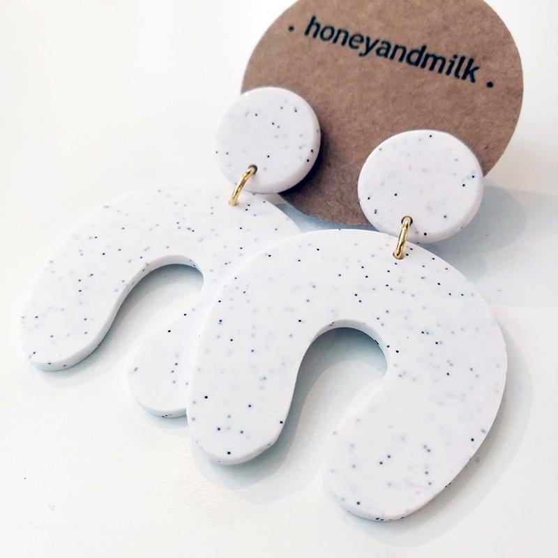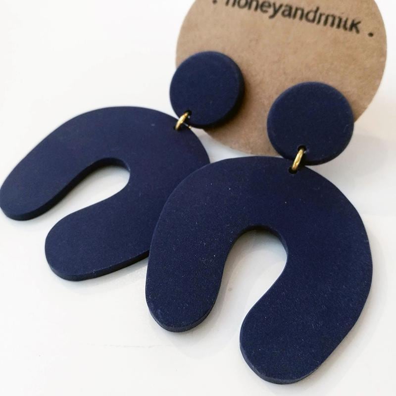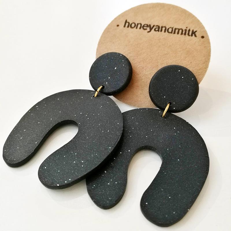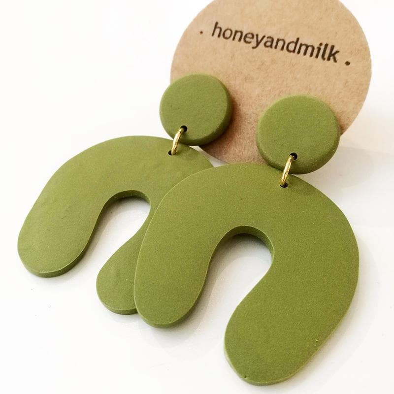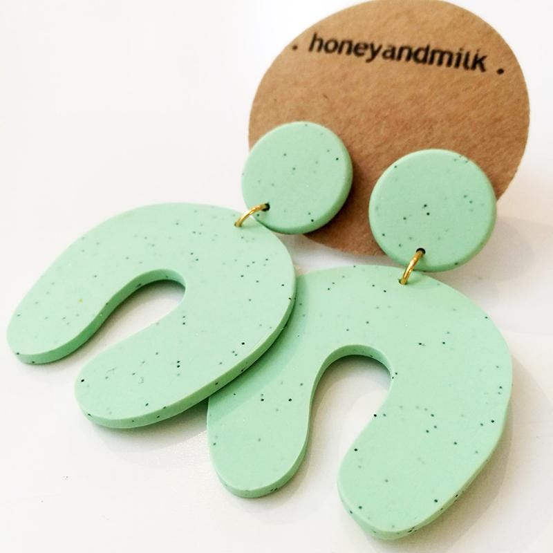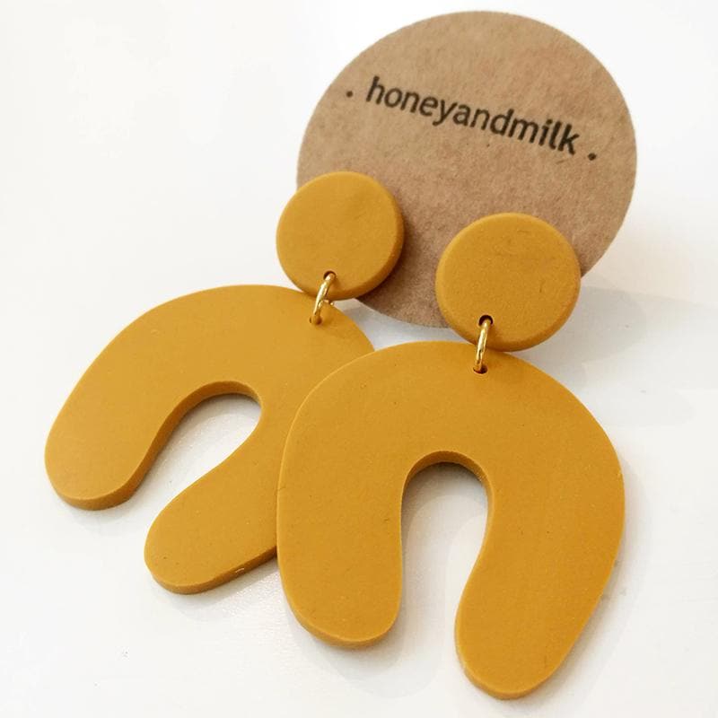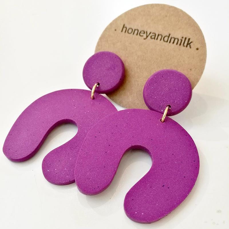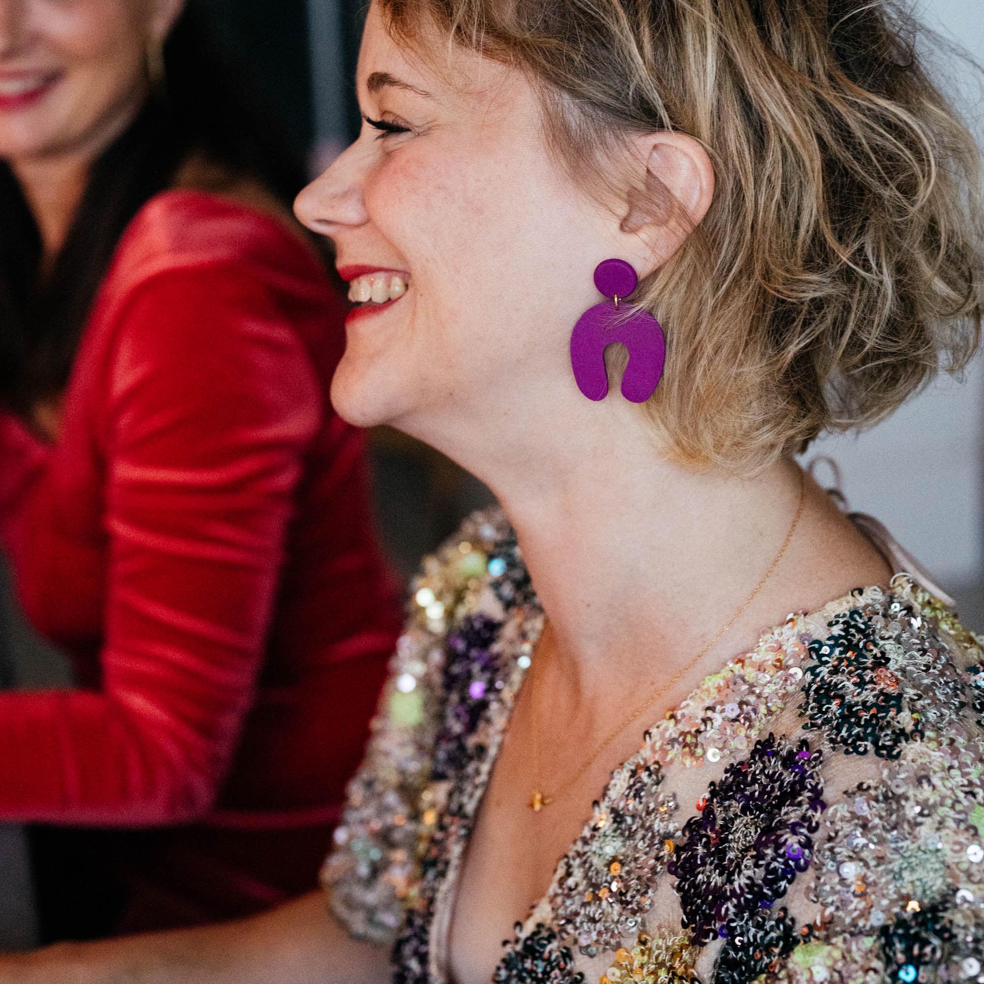 Affirmez votre style avec ces boucles d'oreilles colorblock, aux courbes voluptueuses, modelées à la main en pâte polymère.